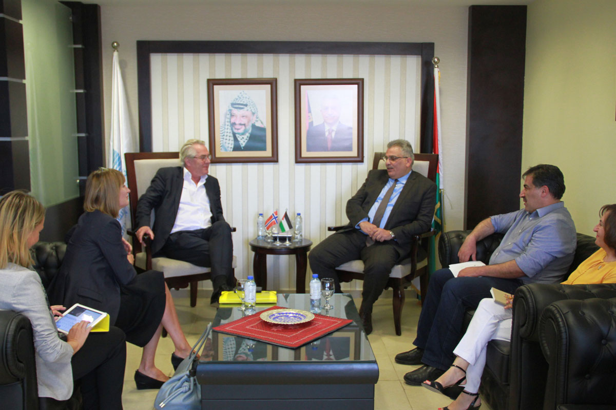 رام الله : التقى رئيس سلطة المياه م.مازن غنيم في مكتبه اليوم بالمبعوث النرويجي الخاص بعملية السلام تور وينسلد لبحث التطورات القائمة في قطاع المياه والقضايا التي تتطلب التدخل والدعم من اجل المضي قدما بها لا سيما في المشاريع الجاري العمل بها في قطاع غزة