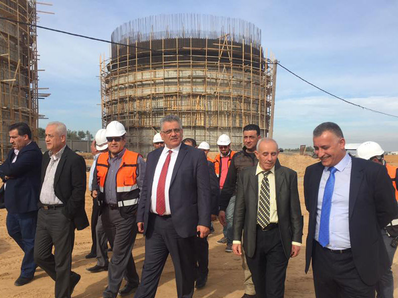 غزة- تفقد رئيس سلطة المياه م. مازن غنيم محطة معالجة المياه العادمة لمحافظتي غزة والوسطى والتي تنفذ بإشراف سلطة المياه وتنفيذ مصلحة مياه بلديات الساحل بدعم من بنك التنمية الألماني، وذلك شرق البريج، حيث اطلع على سير العمل المستمر في المشروع الذي سيخدم 600 ألف نسمة في المحافظتين بقدرة استيعابية تصل إلى 60 ألف لتر مكب يومياً.