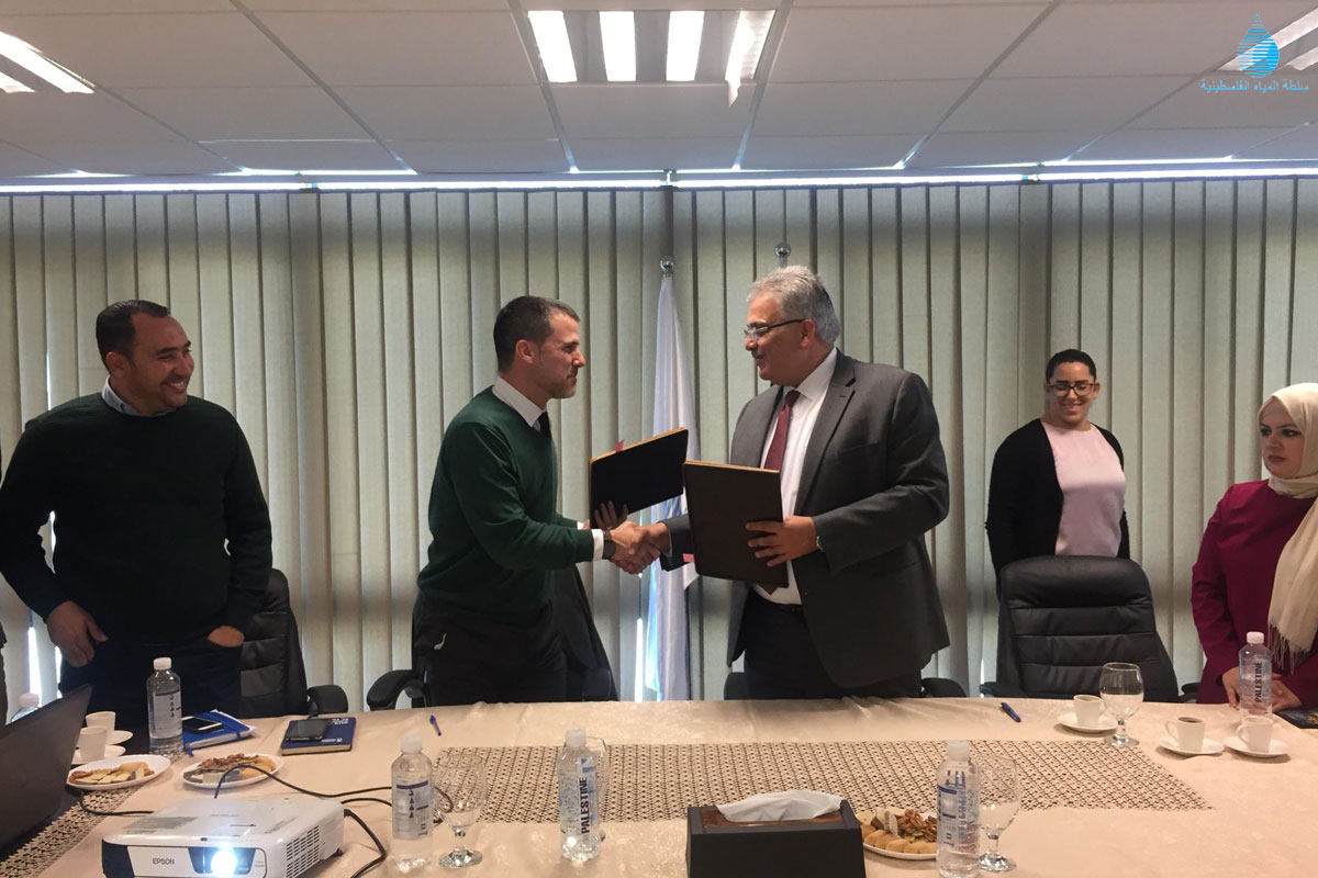 رام الله: وقع رئيس سلطة المياه م. مازن غنيم اليوم مع مدير مؤسسة العمل ضد الجوع السيد كونزالو كودينا، مذكرة تفاهم للتعاون في جميع البرامج والمشاريع المتعلقه بالمياه والصرف الصحي في فلسطين.
