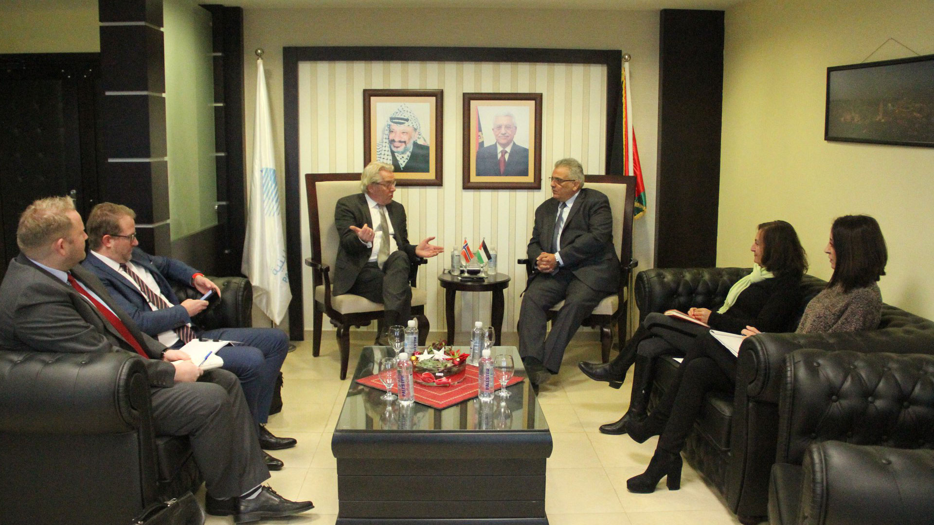 رام الله : التقى رئيس سلطة المياه م.مازن غنيم في مكتبه اليوم بالمبعوث النرويجي الخاص بعملية السلام تور وينسلد لبحث التطورات القائمة في قطاع المياه والقضايا التي تتطلب التدخل والدعم من اجل المضي قدما ، وضمان ديمومة العمل بها.