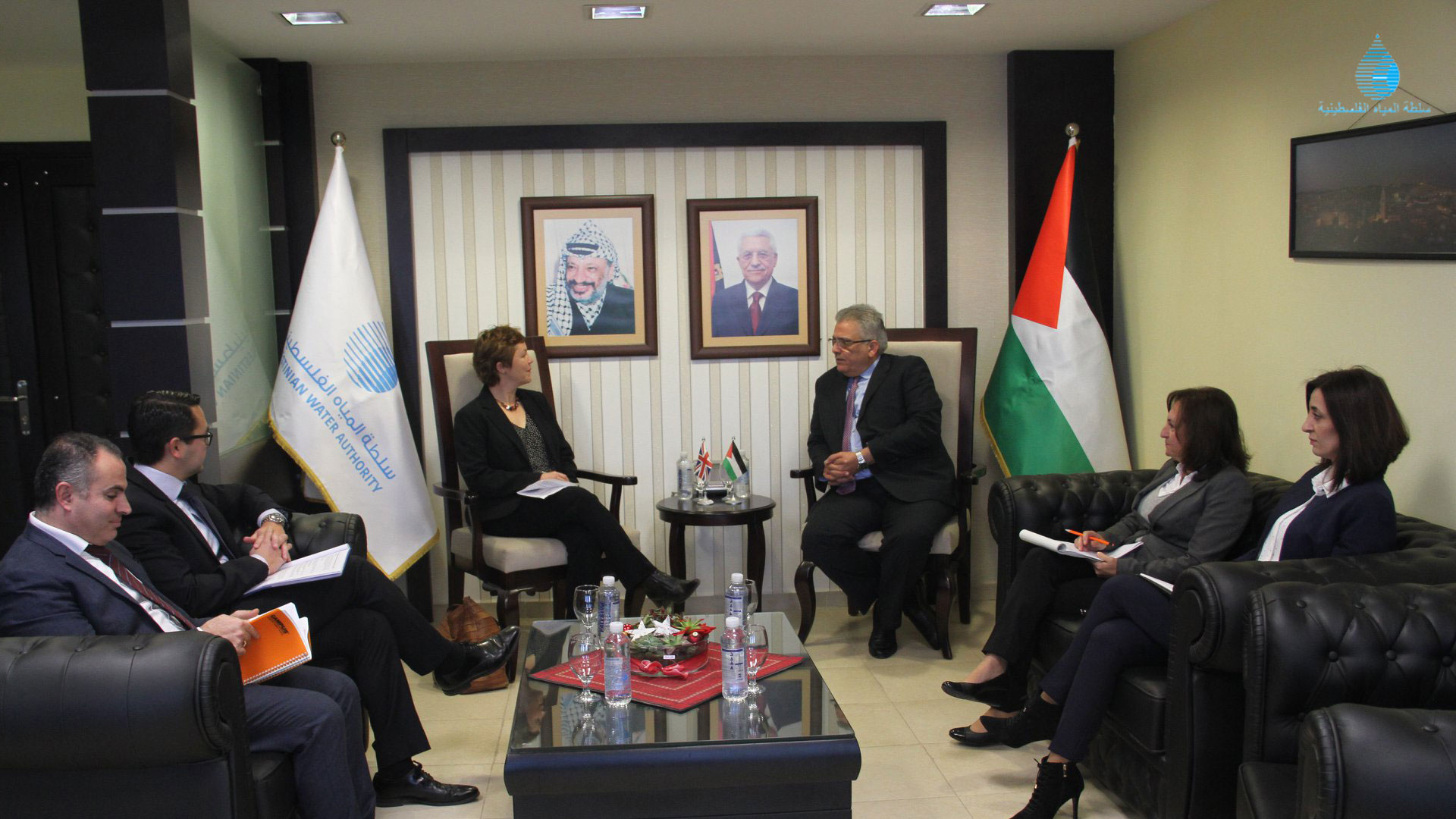 رام الله – التقى رئيس سلطة المياه المهندس مازن غنيم في مكتبه اليوم بالسيدة كولينا وين رايت مديرة وكالة التنمية الدولية البريطانية والطاقم المرافق لها لبحث جملة من القضايا المتعلقة ببرامج سلطة المياه التطويرية والمستقبلية وعلى راسها بحث دعم الحكومة البريطانية لبرنامج محطة التحلية المركزية في اطار استكمال الاعمال التي تقوم بها سلطة المياه لانهاء الاجراءات المتعلقة بتحديد اليات التمويل وتوقيع مذكرات التفاهم مع الداعمين والممولين لهذا المشروع الاستراتيجي وفق الالية التي تم التوافق عليها في مؤتمر المانحين الذي عقد العام المنصرم واجتماع اللجنة لمتابعة اطلاق المشاريع الذي عقد في بروكسل منتصف الشهر الماضي من العام الحالي.