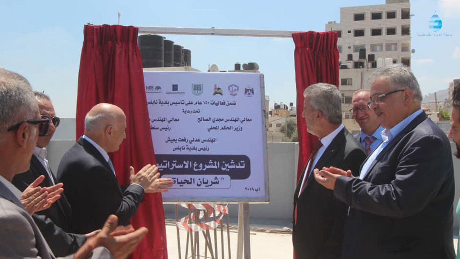 نابلس: دشن رئيس سلطة المياه م. مازن غنيم ووزير الحكم المحلي مجدي الصالح ورئيس بلدية نابلس الحاج عدلي يعيش مشروع المياه الاستراتيجي شريان الحياة الهادف لزيادة كميات المياه والتخلص من الازمة المائية التي تشهدها مدينة نابلس كل عام. والذي تم تمويله من من ميزانية بلدية نابلس وموازنة سلطة المياه ومنحة من صندوق العربي الانمائي بتكلفة اجمالية بلغت 9 مليون شيقل.