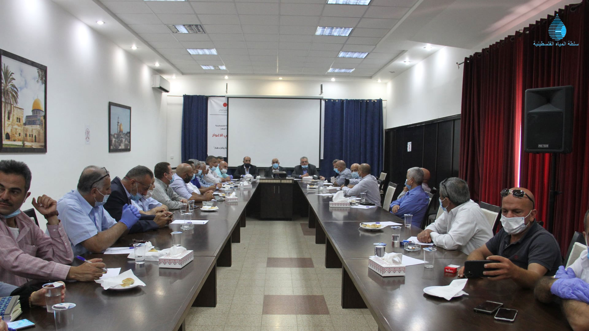 كما عقد رئيس سلطة المياه الفلسطينية المهندس مازن غنيم ووزير الزراعة رياض عطاري اليوم وبحضور محافظ محافظة اريحا والأغوار جهاد ابو العسل لقاء مع ممثلي الجمعيات التعاونية في محافظة اريحا والأغوار لبحث مشكلة شح المياه الزراعية والخيارات التي من الممكن العمل بها لتخفيفها.