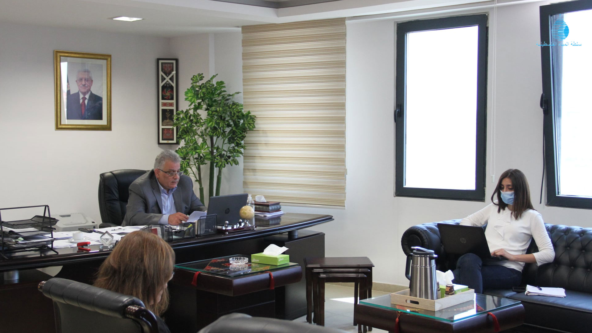 رام الله: التقى رئيس سلطة المياه م. مازن غنيم في مكتبه عبر نظام الفيديو نائب مدير بنك التنمية الإسلامي محمد جويني، ومديرة إدارة دول الجوار لبنك الاستثمار الأوروبي السيدة فلافيا بالنزا، والقائم بأعمال مدير إدارة الجوار الجنوبي للاتحاد الأوروبي السيد جيف بلييرفيلوري والطواقم الفنية المتابعة للبرنامج من البنك الإسلامي وبنك الاستثمار الأوروبي والاتحاد الأوروبي والبنك الدولي لاطلاعهم على آخر مستجدات وتطورات العمل في مشروع محطة التحلية المركزية، وبحث التعهدات المالية التي تم اقرارها من قبلهم لصالح المشروع وتحديد الجدول الزمني للبرنامج للمضي قدماً في تنفيذ برنامج التحلية المركزية والأعمال المصاحبة.