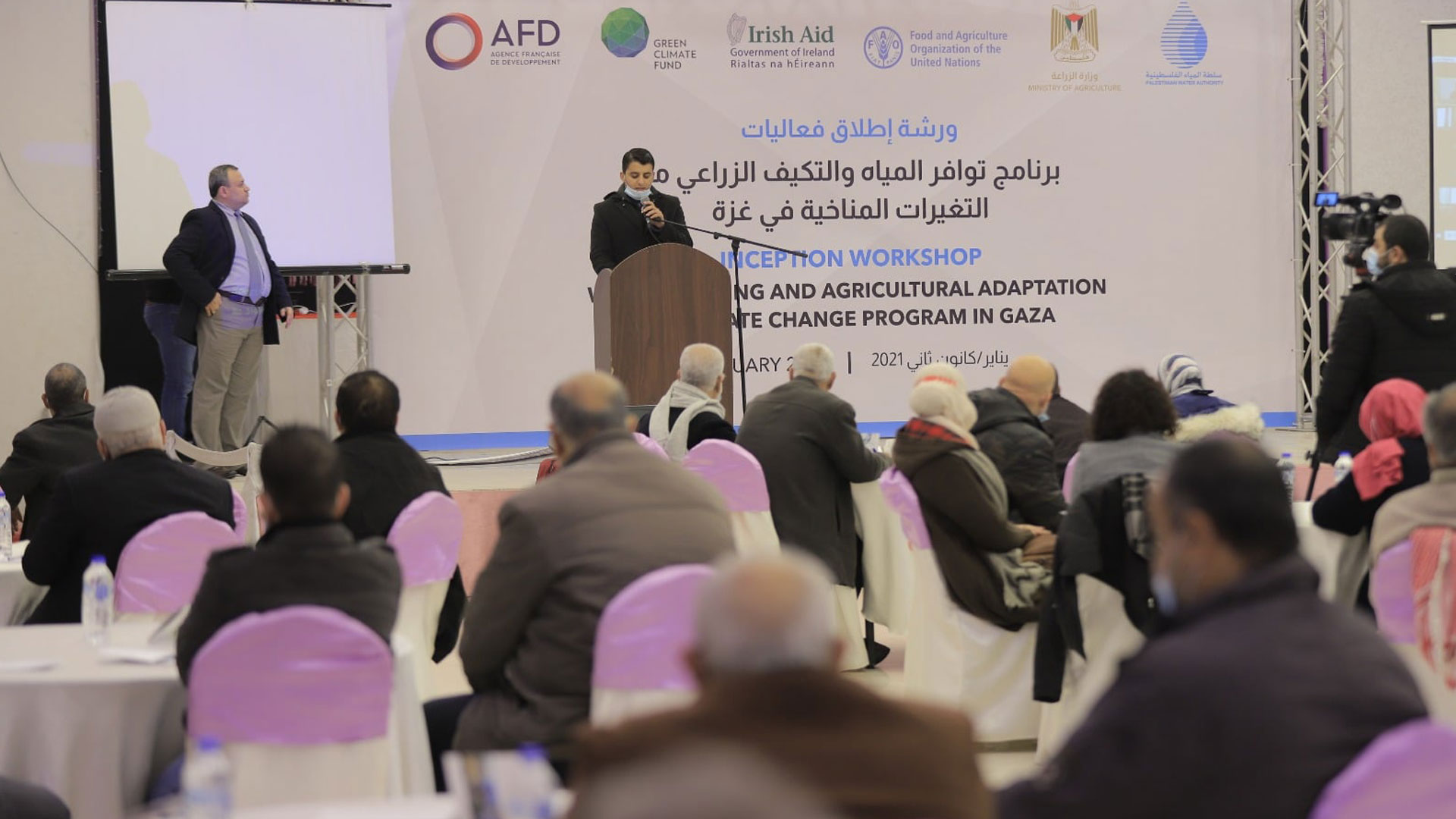 جاء ذلك خلال حفل اطلاق المشروع، بمشاركة ممثلين عن المجتمع المحلي في قطاع غزة وكافة الشركاء والممولين في المشروع، حيث أشاد م.غنيم في بدابة كلمته بالشركاء المانحين من الحكومة الفرنسية، والحكومة الايرلندية، وصندوق المناخ الأخضر، على دعمهم السخي لتوفير التمويل اللازم للبرنامج، بالإضافة إلى الشركاء في متابعة وتنفيذ البرنامج في مختلف مكوناته وكل حسب تخصصه، وزارة الزراعة، ومنظمة الأمم المتحدة للأغذية والزراعة (الفاو)، وكل من سلطتي الطاقة وجودة البيئة، ولمصلحة مياه بلديات الساحل.