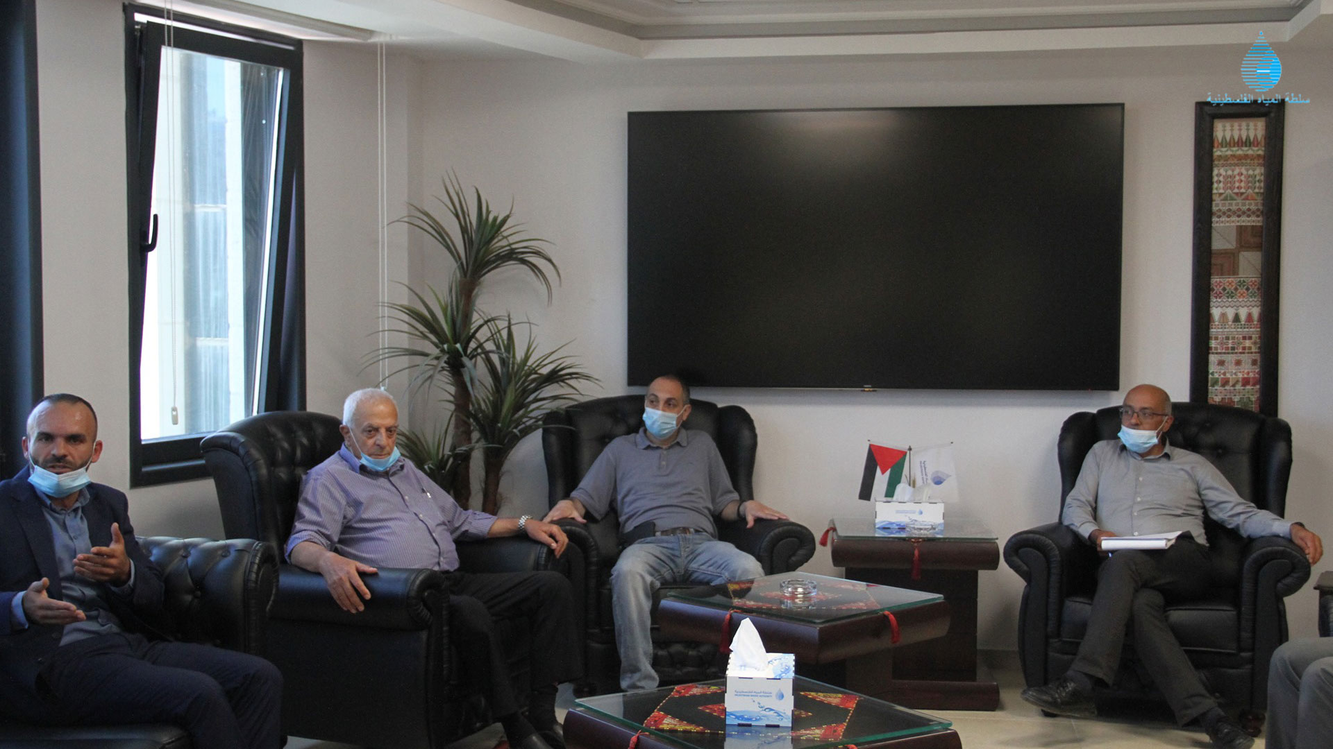 رام الله: استقبل رئيس سلطة المياه المهندس مازن غنيم في مكتبه اليوم رؤساء بلديات قرى شمال رام الله وتضم سنجل ، جلجليا، مزارع النوباني، عبوين وعارورة، وذلك لبحث المشاكل التي تعاني منها البلدات من نقص في كميات المياه الواصلة اليهم، والاحتياجات اللازمة للمساهمة في تحسين عمليات التوزيع بين القرى.