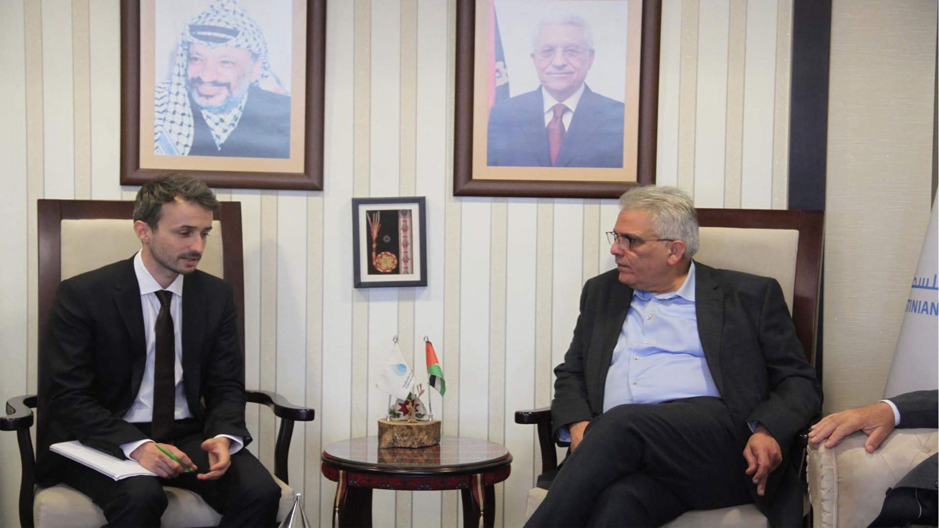 رام الله: استقبل رئيس سلطة المياه المهندس مازن غنيم في مكتبه اليوم مدير المشروع من الوكالة الفرنسية في باريس السيد كونتان بلاين ومدير الوكالة في القدس السيد مارتن برينت، لمناقشة ابرز التطورات في برنامج توافر المياه والتكيف المناخي الممول من قبل الوكالة الفرنسية للتنمية و صندوق المناخ الأخضر ووكالة التنمية الإيرلندية، بقيمة تصل إلى 45 مليون يورو، ويهدف إلى استخدام المياه المستعادة ضمن المشروع لري 15 ألف دونم من الأراضي الزراعية في شمال وشرق غزة. إلى جانب بحث مشروع اعادة الاستخدام من محطات تنقية مياة الصرف الصحي في الخليل ونابلس وباقة وطولكرم.