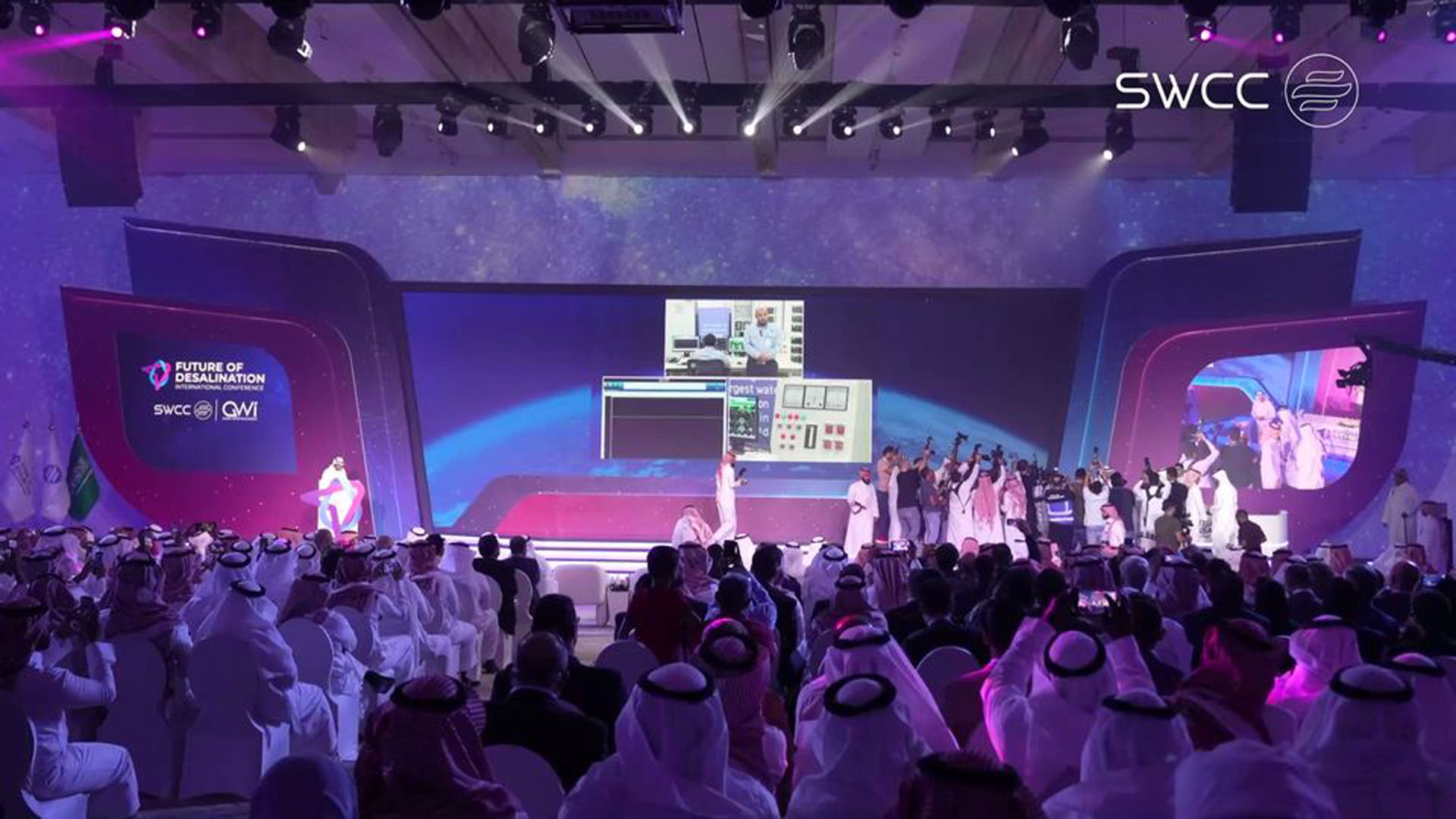 ويقام المؤتمر تحت شعار "التحلية في الفضاء"، ويعد أول تجمع عالمي من نوعه يستشرف آفاق وحلول مستقبل المياه في العالم لتطوير الصناعة وبحث وطرح الحلول المستدامة. بمشاركة 120 متحدثاً محليًا ودوليًا من بينهم وزراء للمياه من مختلف دول العالم.