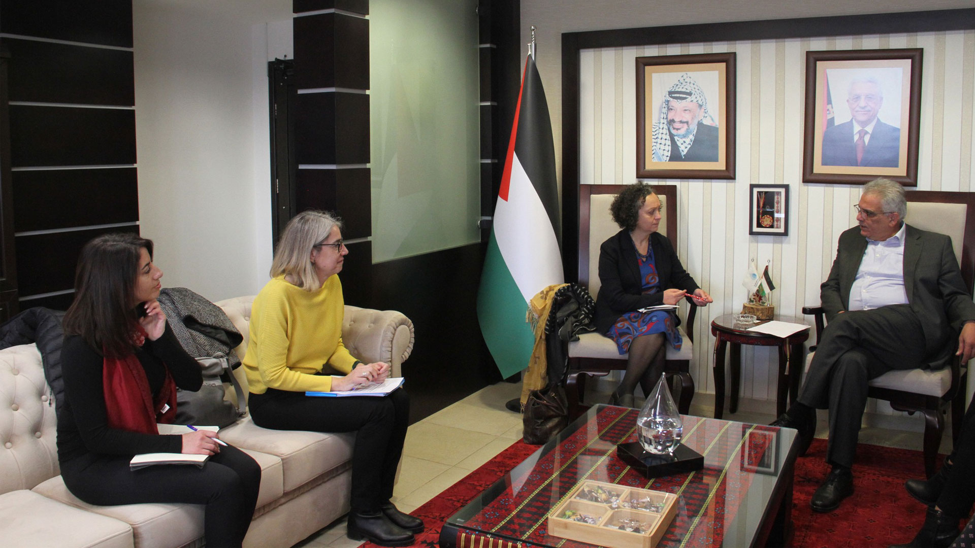 رام الله: استقبل رئيس سلطة المياه المهندس مازن غنيم في مكتبه اليوم ممثلة منظمة اليونيسيف في فلسطين السيدة لوتشيا المي والوفد المرافق لها في لقاء خصص لمتابعة تطورات العمل في البرامج والمشاريع الجاري تنفيذها من قبل سلطة المياه والممولة من منظمة اليونيسيف والتي تعكس احتياجات قطاع المياه في الضفة وغزة، الى جانب تقييم الخطة السنوية الحالية والمشاريع التي سيتم تضمينها في خطة العام القادم.