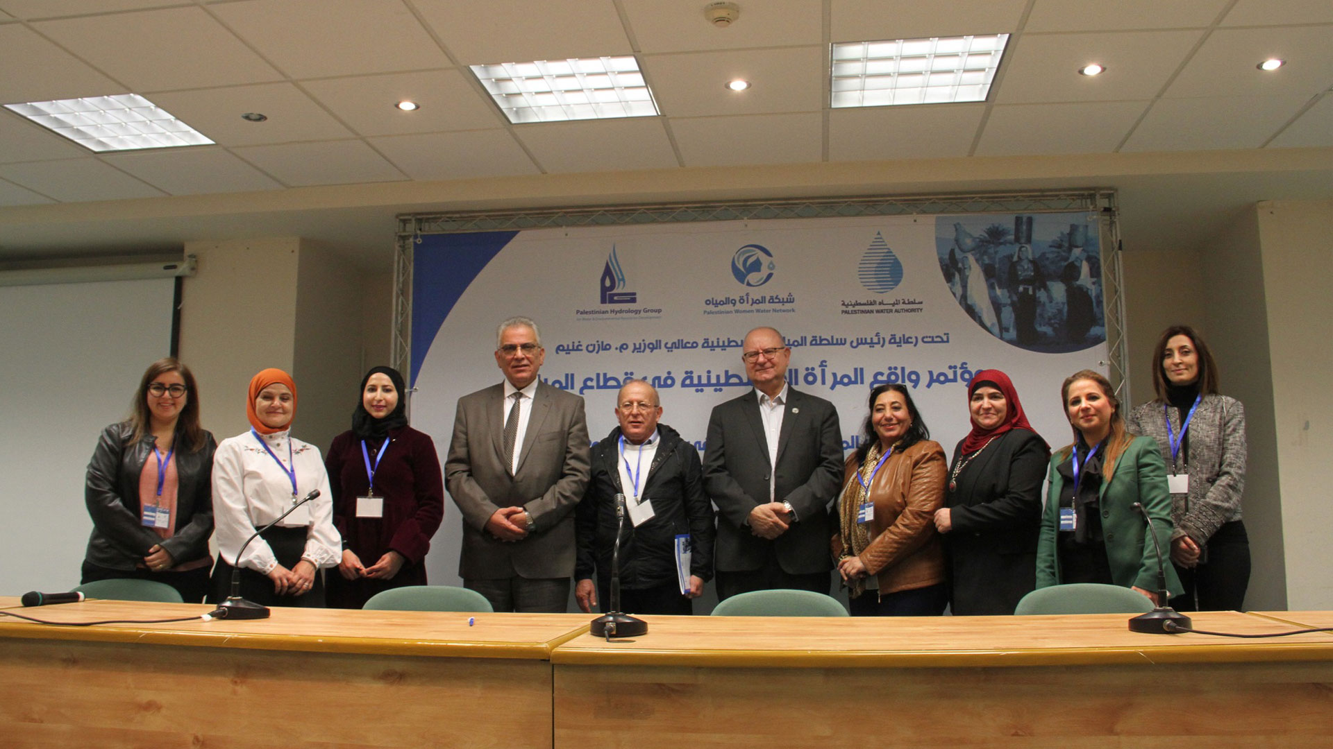 الوزير مازن غنيم في كلمته فقد أشار الى وجود عوامل ومحفزات لتمكين المرأة في القطاعات الحيوية وخصوصاً قطاع المياه، منها تنامي اھتمام المجتمع الدولي بقضايا النوع الاجتماعي وتمكين المرأة وربطه بقطاع المياه، وجود توجه من قبل الحكومة الفلسطينية لإدماج المرأة في مختلف القطاعات، ووجود مؤسسات مختصة يمكن الاستفادة منها في هذا الاطار، الى جانب تنامي الوعي المحلي لمفهوم ودور المرأة في قطاع المياه.