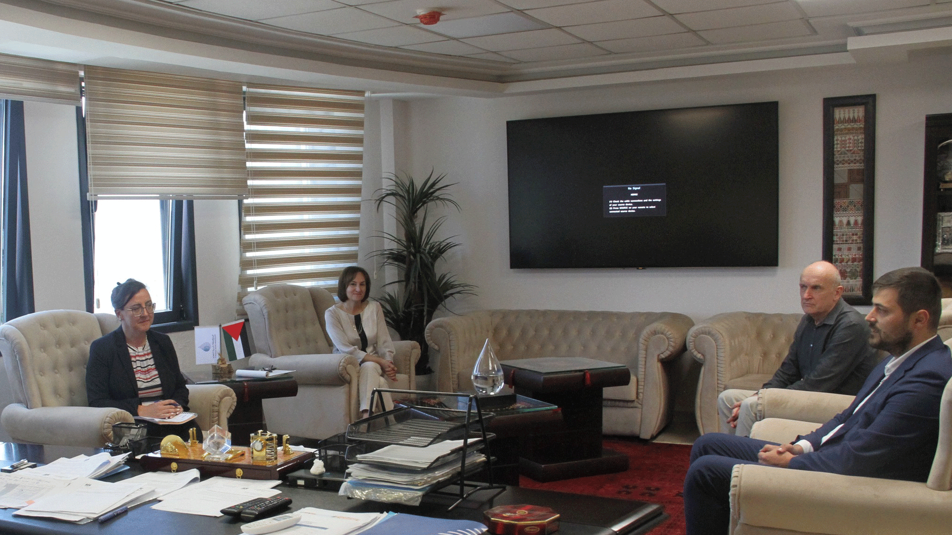 رام الله: بحث رئيس سلطة المياه م. مازن غنيم في مكتبه اليوم مع البعثة النمساوية الاستشارية للتطوير المؤسسي بمشاركة السيدة د. سونجا هوفبور والسيد مومتشيللو بلاغوفيتش والسيد راينوالد سيدلمان الخطوات العملية لتنفيذ برنامج التطوير المؤسسي لسلطة المياه الممول من قبل وكالة التنمية النمساوية للأعوام 2023-2025 والذي يهدف الى إحداث تطوير في الجوانب المؤسساتية بما ينسجم مع الخطط المستقبلية لسلطة المياه ووضع الاحتياجات اللازمة لرفع كفائة العاملين في المجالات المختلفة في قطاع المياه.